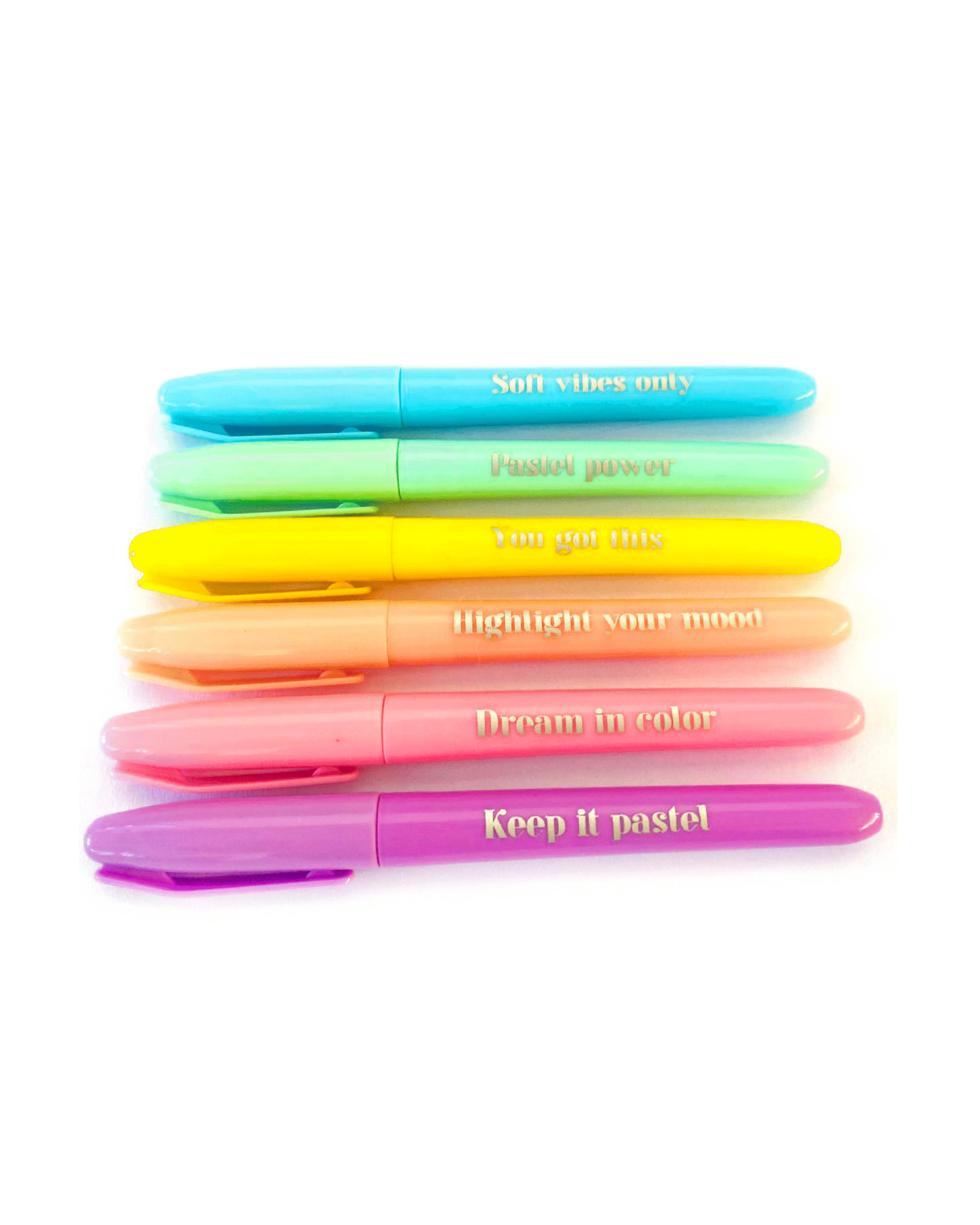 Estuche con 6 resaltadores colores pastel. Poseen punta biselada y cuerpo redondo