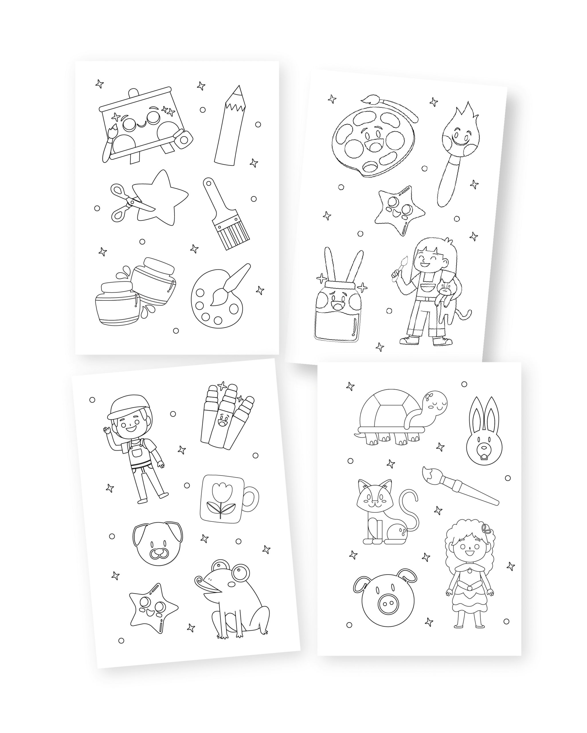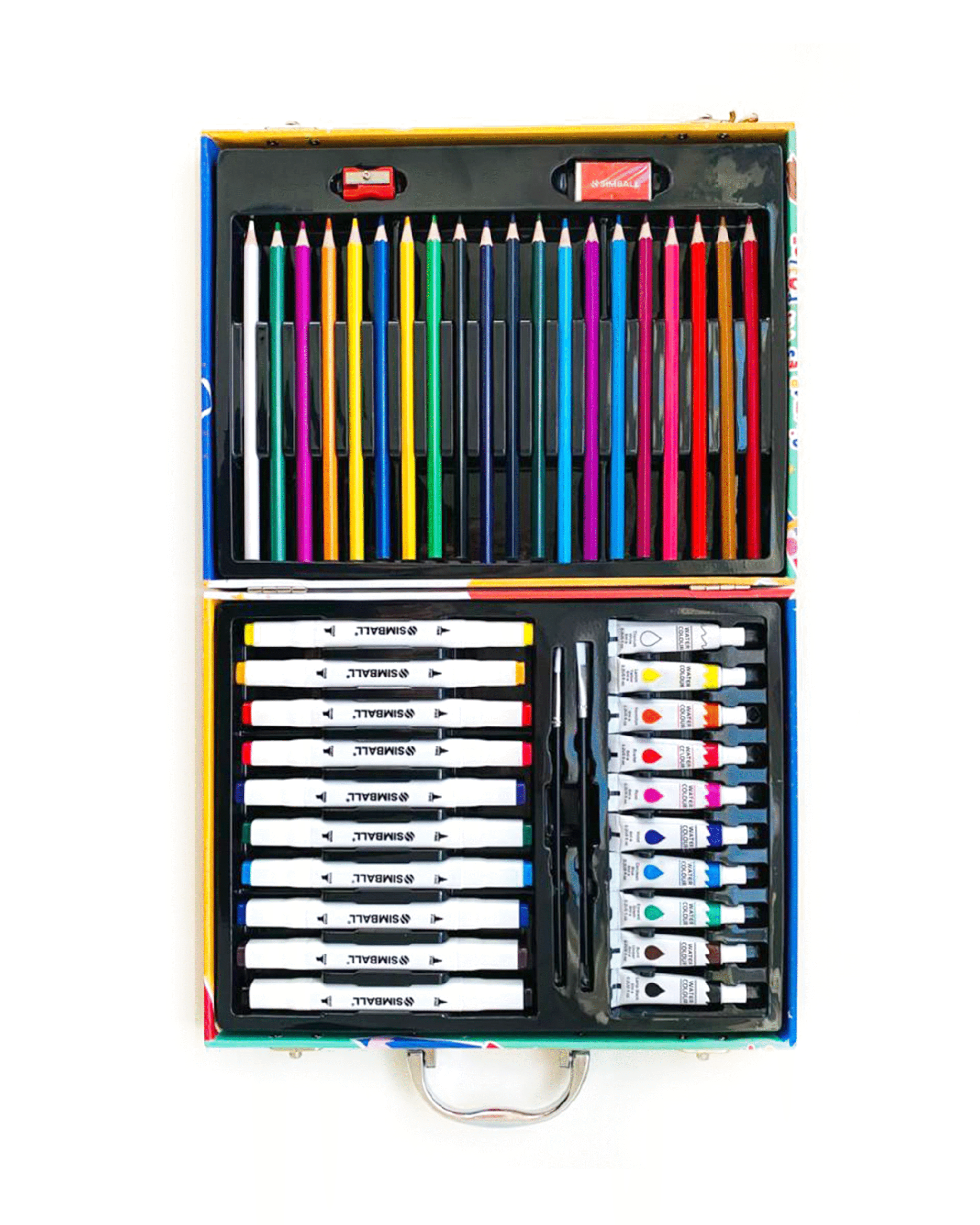 Kit de Arte de 48 piezas. Incluye: Lápices de colores, Marcadores Doble Punta, Témperas, Planchas de Stickers, Pinceles, Goma y Sacapuntas.